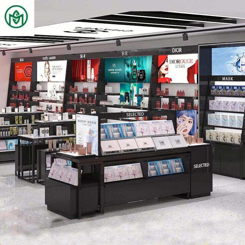 Tienda Ajustable Estante de tienda de cosméticos Estantes de maquillaje LED para tienda Exhibición de cosméticos Tienda Diseño de interiores