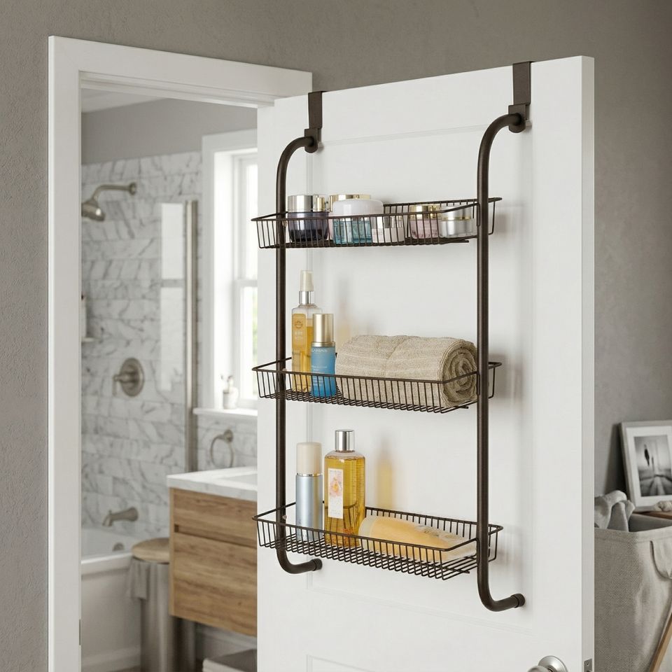 Organizador de Almacenamiento para Baño, Colgante de Puerta, Multifuncional, Moderno, de Acero, Marca Shopee MIT Taiwan, Capacidad de Carga de 5-10 kg