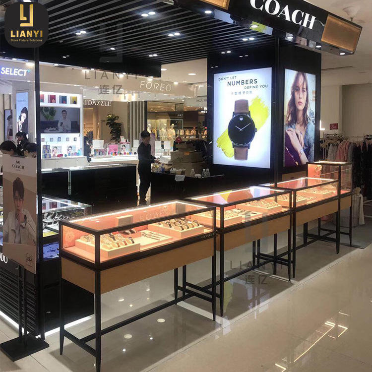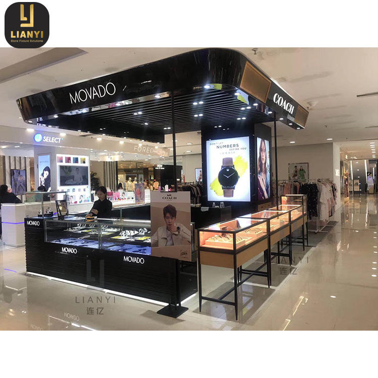 Escaparate de cristal de diseño moderno para tienda de relojes para quiosco de centro comercial