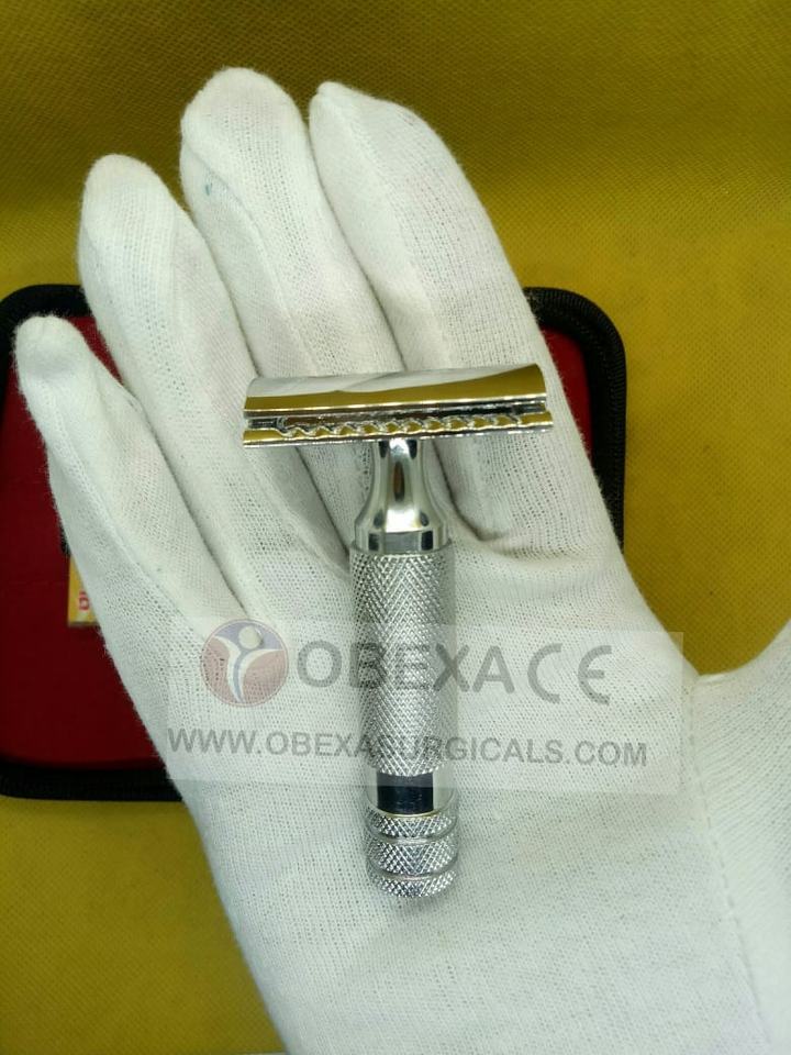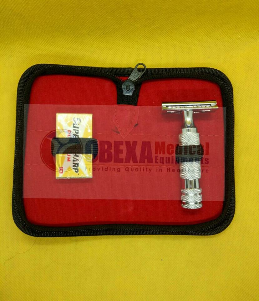 Maquinilla de afeitar de seguridad de mango corto de acero inoxidable con estuche de cuero
