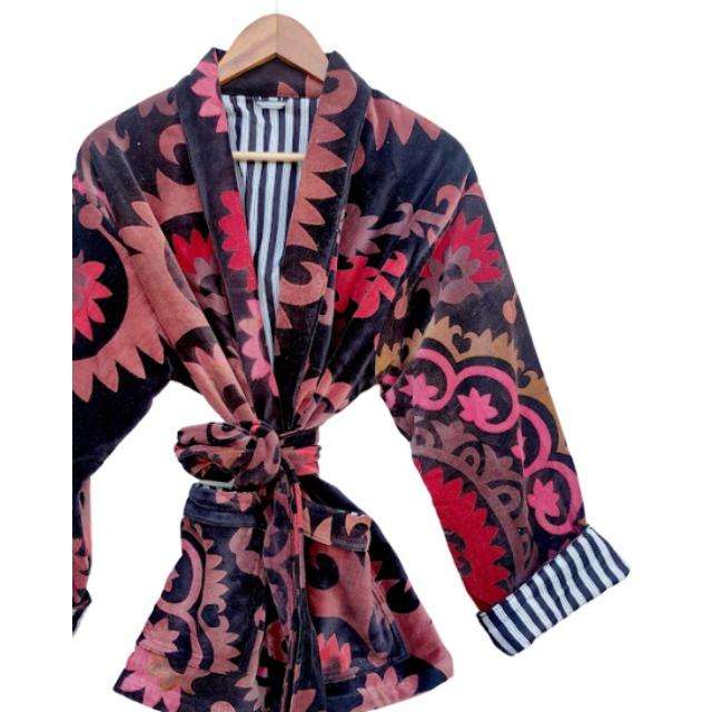 Women's Short Velvet Cotton Printed Kimono