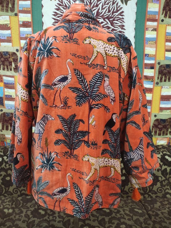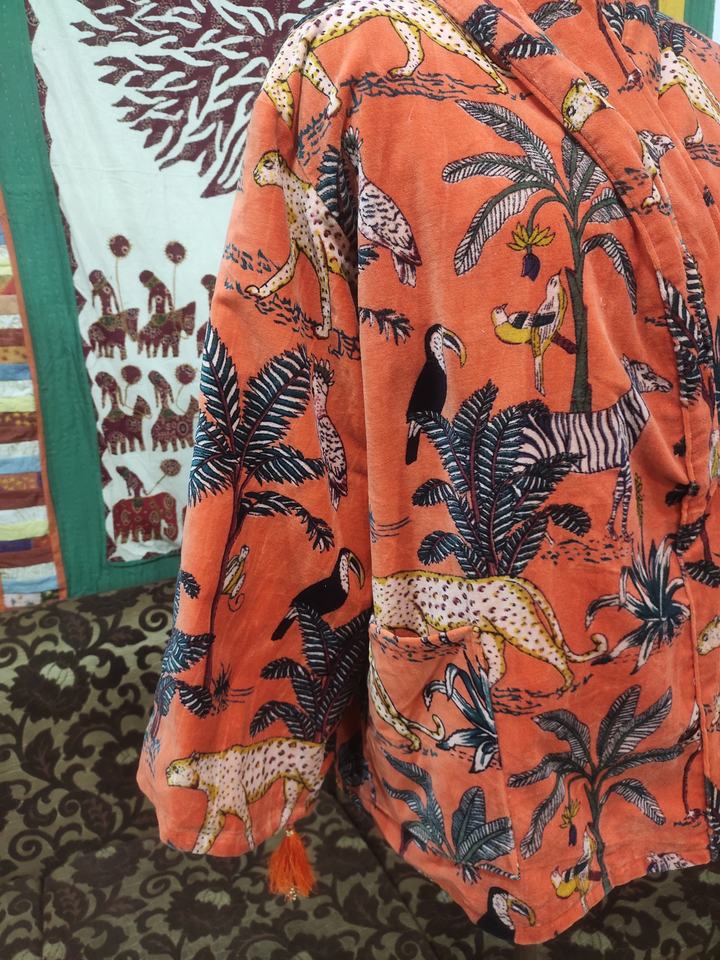 Chaqueta de Bata de terciopelo de algodón para mujer, tamaño libre para el hogar o el vestido nupcial, temporada de primavera y verano con estampado de Safari en la jungla