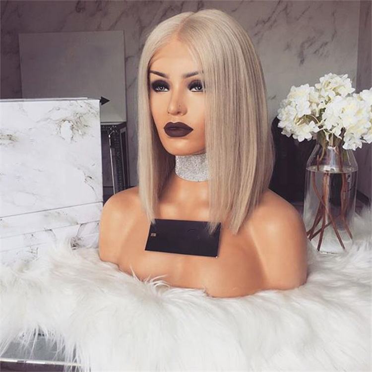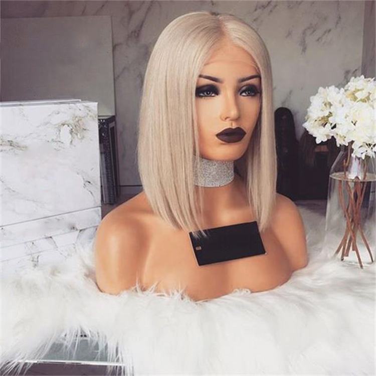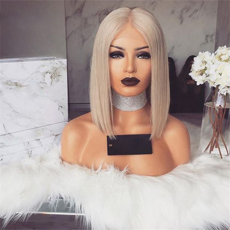 Nombre:Peluca de cabello humano de encaje completo Bob corte recto rubio platino