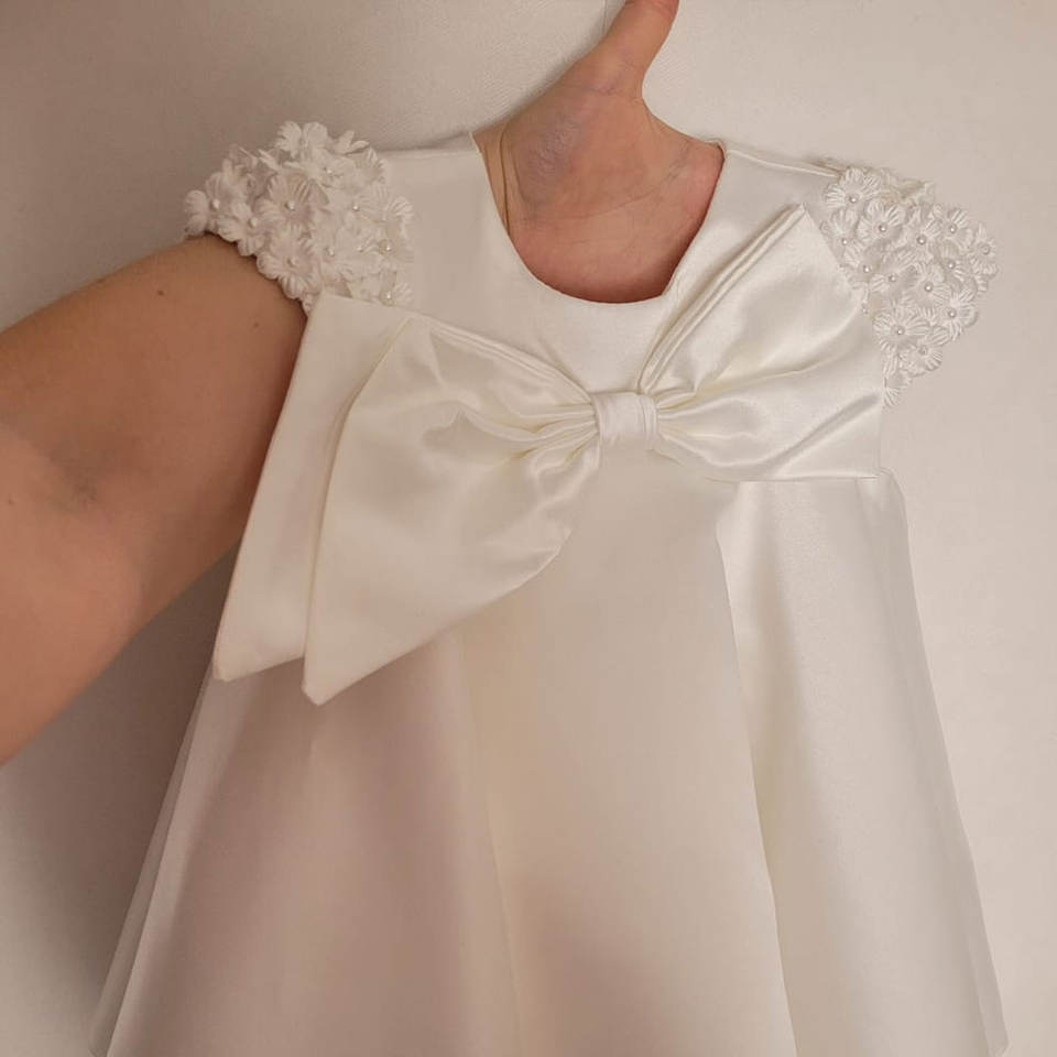 Material:Satén de alta calidad, poliéster, apliques florales 3D