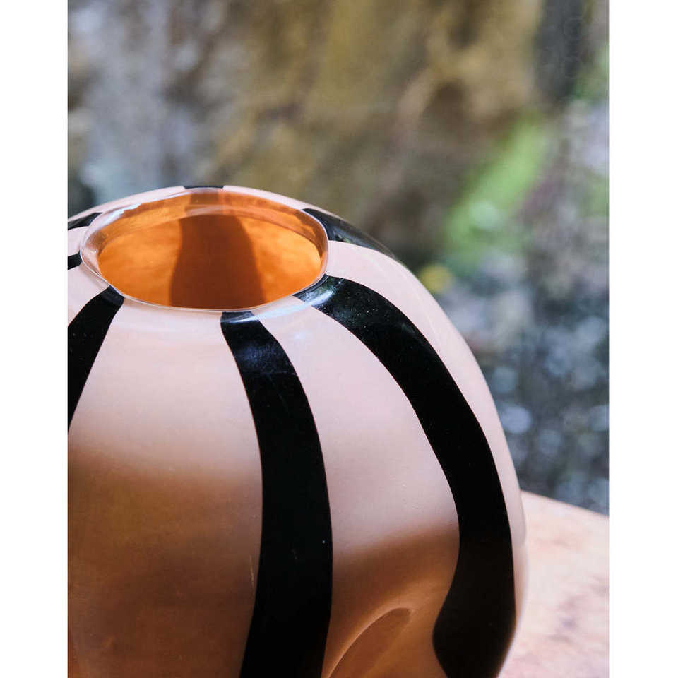 Jarrón de mesa de cristal redondo corto con patrón de rayas estilo Lolli