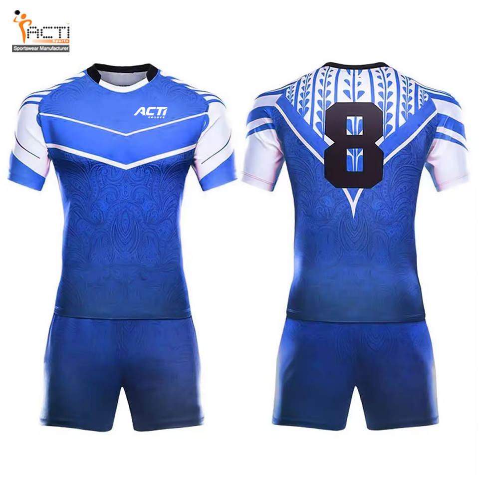 Uniforme de Rugby transpirable de manga corta para hombre Uniforme de Rugby de tamaño personalizado de buena calidad