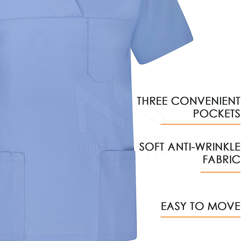 Hombres de manga corta con cuello en V 3 bolsillos Scrubs Algodón hecho médico Scrubs Top médicos Scrub traje hospitales médicos enfermera uniformes vestido