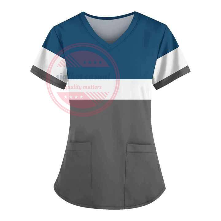 Uniformes de manga corta con cuello en V Scrub Tops con bolsillos para hospital