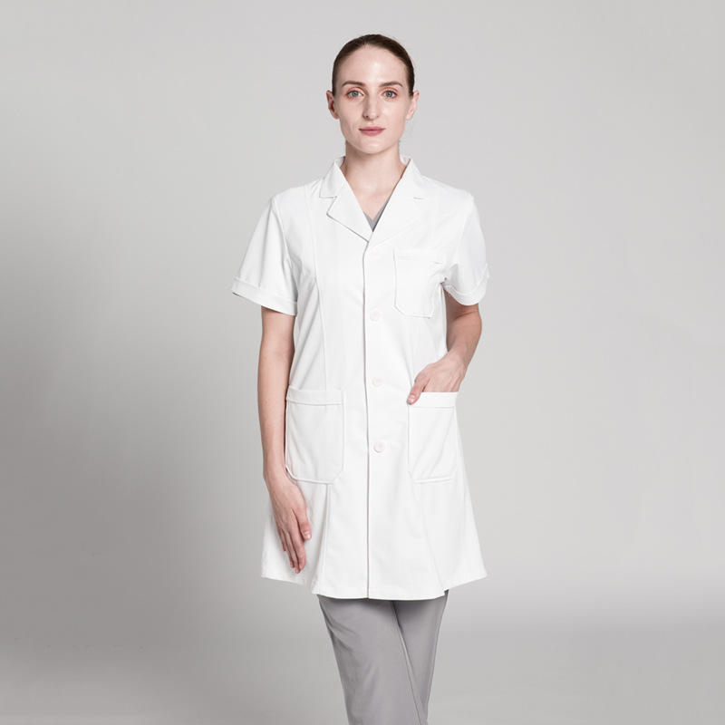 Abrigo blanco de manga corta para hombres y mujeres, uniforme de médicos de clínica de Farmacia de hospital con logotipo personalizado de gama alta