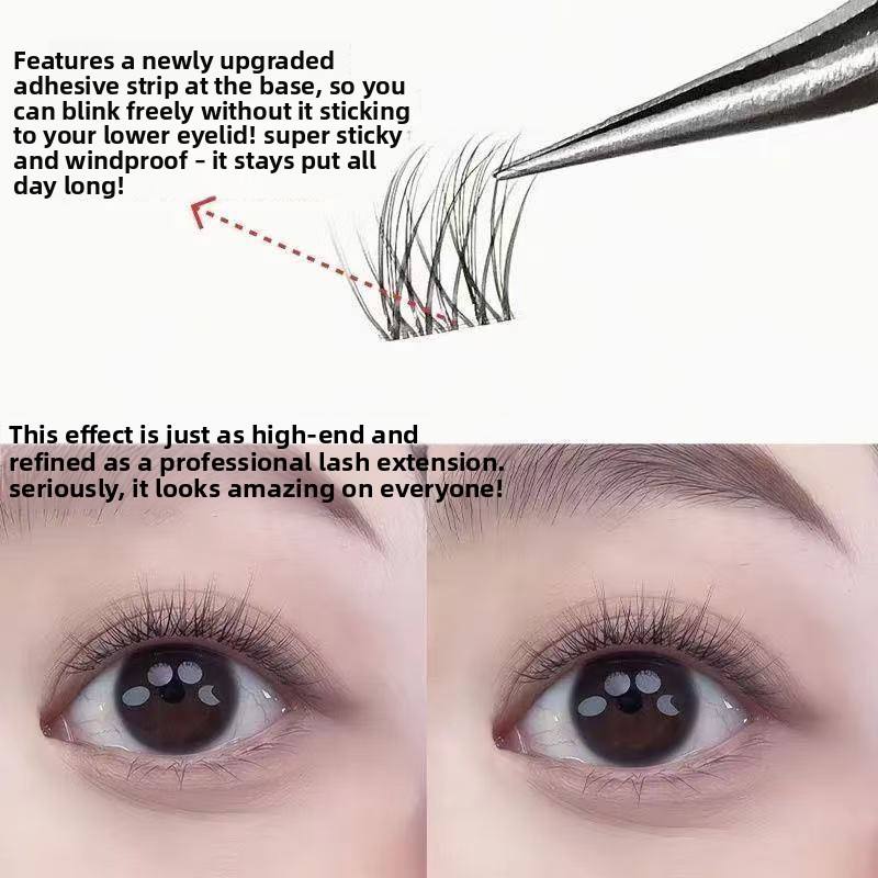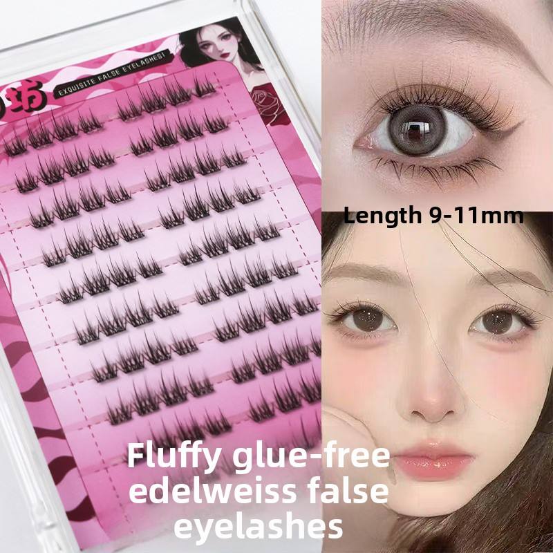 Pestañas Postizas Cortas, Súper Naturales, Tipo Edelweiss, Suaves, Sin Pegamento, Autoadhesivas, Segmentadas, Rizadas, con Banda de Plástico Transparente