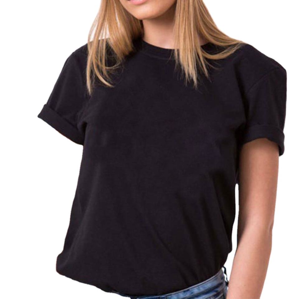 Camiseta de manga corta 100% de algodón para mujer, ropa básica lisa con estampado de logotipo personalizado en blanco, cuello redondo, de verano