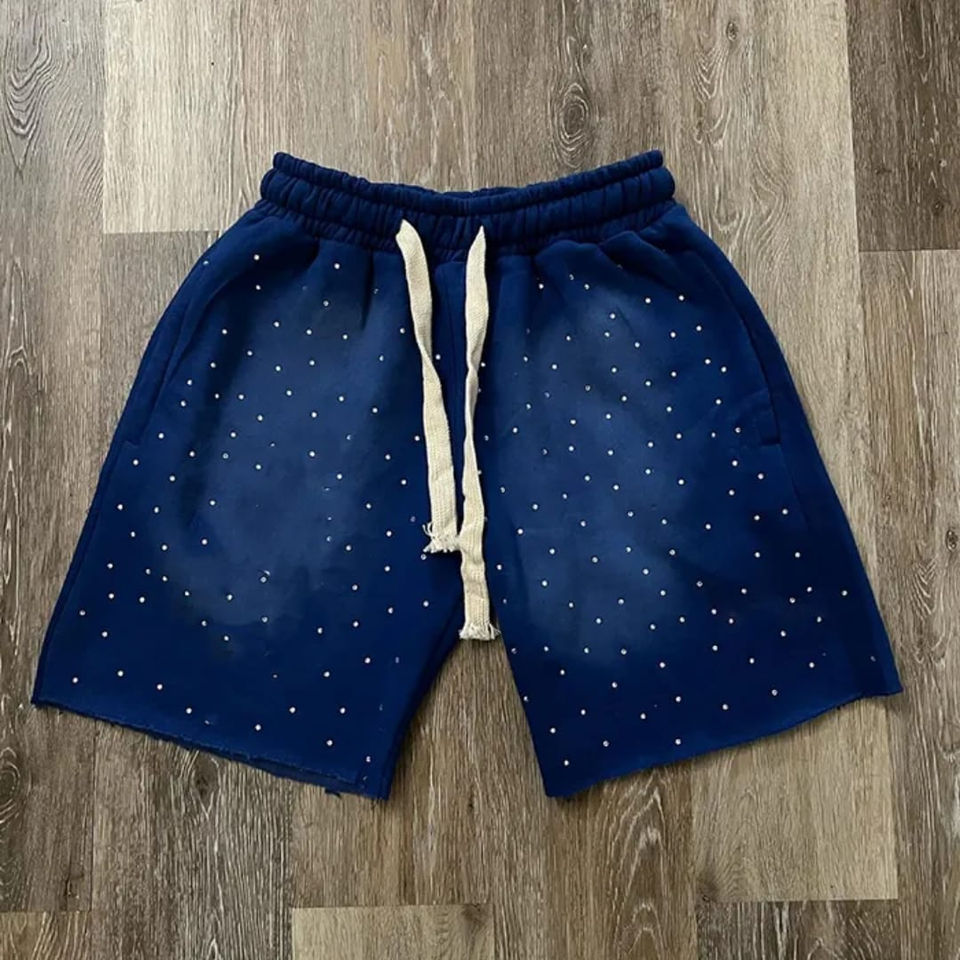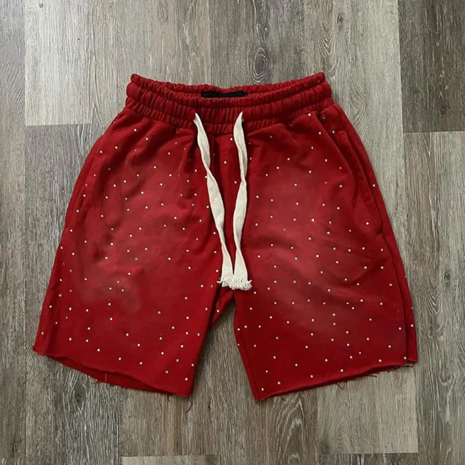 Pantalones Cortos de Verano para Hombre con Pedrería, Lavado Ácido y Bordado Desgastado, Estampado Personalizado, Apliques de Pedrería, Estilo Urbano