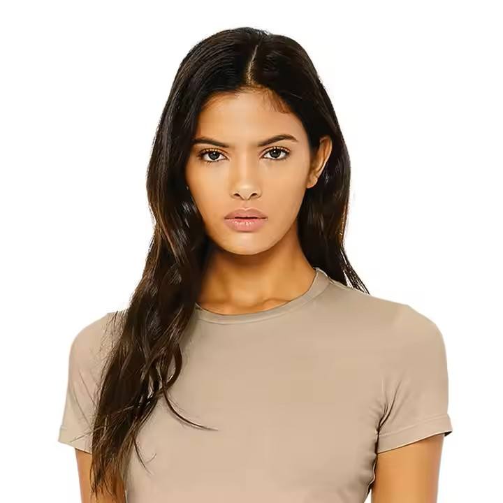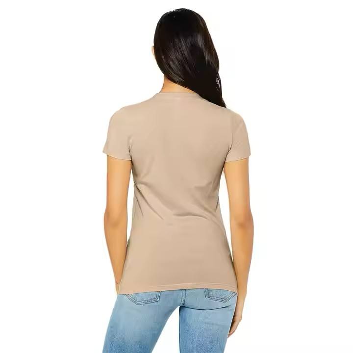 Hombro Taping Longitud del cuerpo más larga 100% Airlume Peinado y anillo de algodón hilado 32 Single 4,2 oz Tan Mujeres Slim Fit Camiseta
