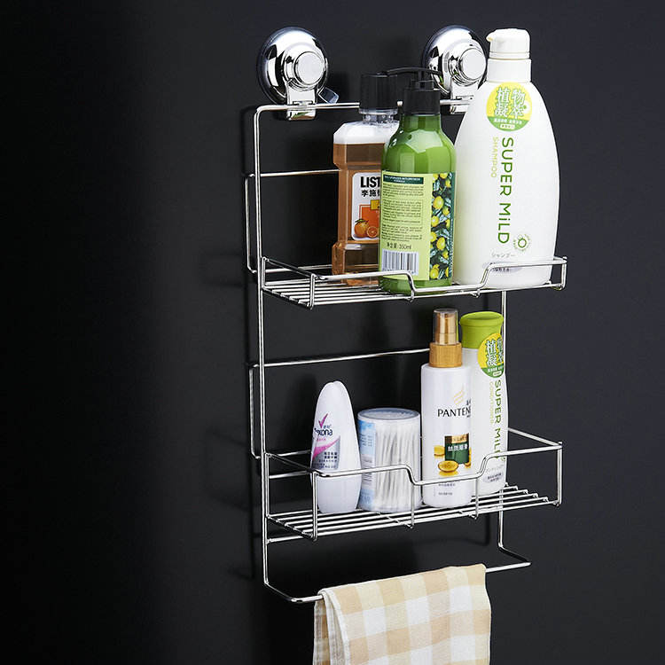 Carrito de ducha de doble capa, estante de ducha con ventosa, montado en la pared, organizador de ducha, cesta extraíble