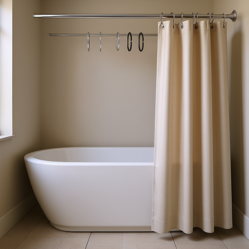 Anillos para cortina de ducha, 12 piezas, polipropileno beige, para uso en el baño