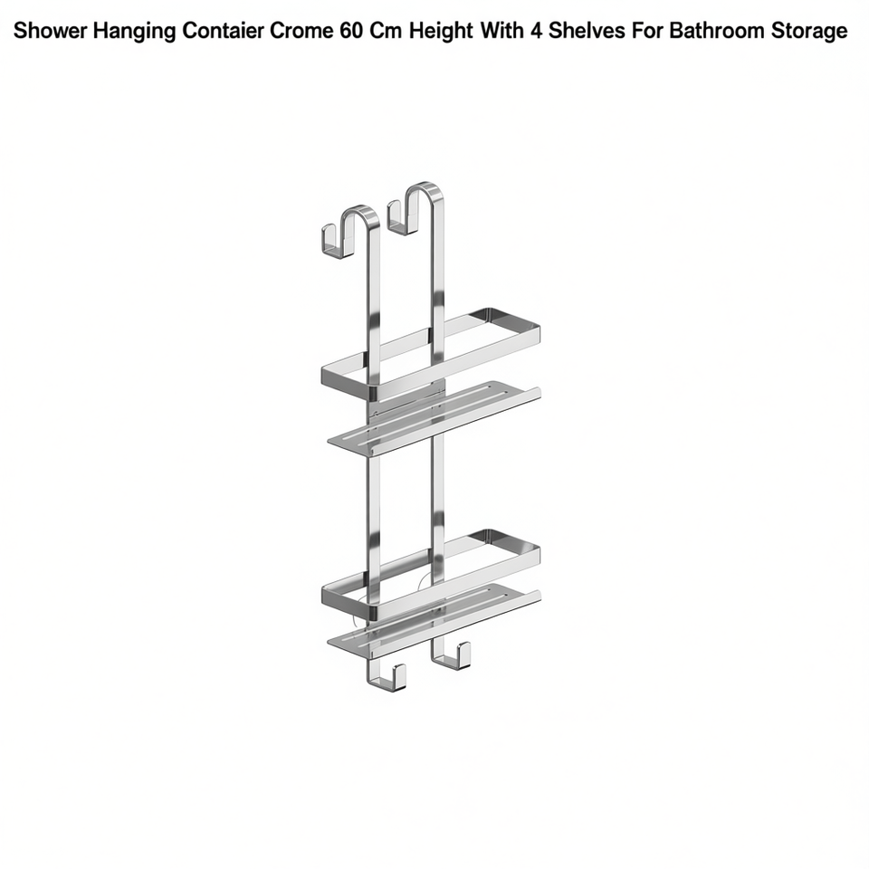 Contenedor Colgante para Ducha Cromado de 60 cm de Altura con 4 Estantes para Almacenamiento en el Baño