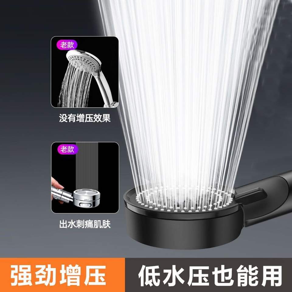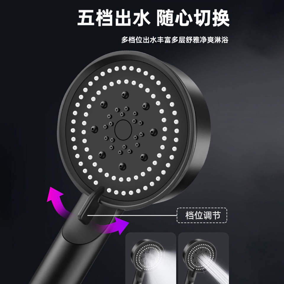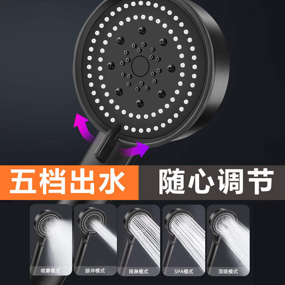 Cabezal de ducha negro de cinco velocidades con aumento de presión [versión reforzada/de pared gruesa].