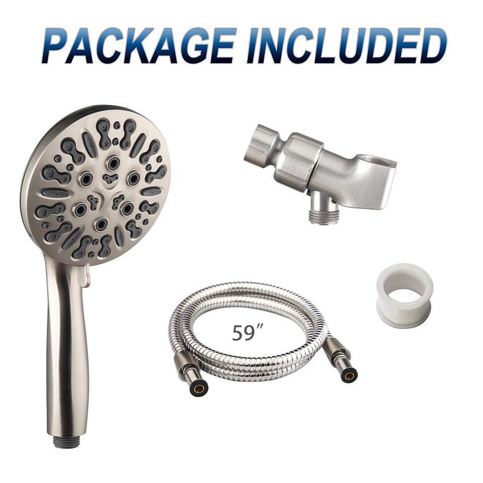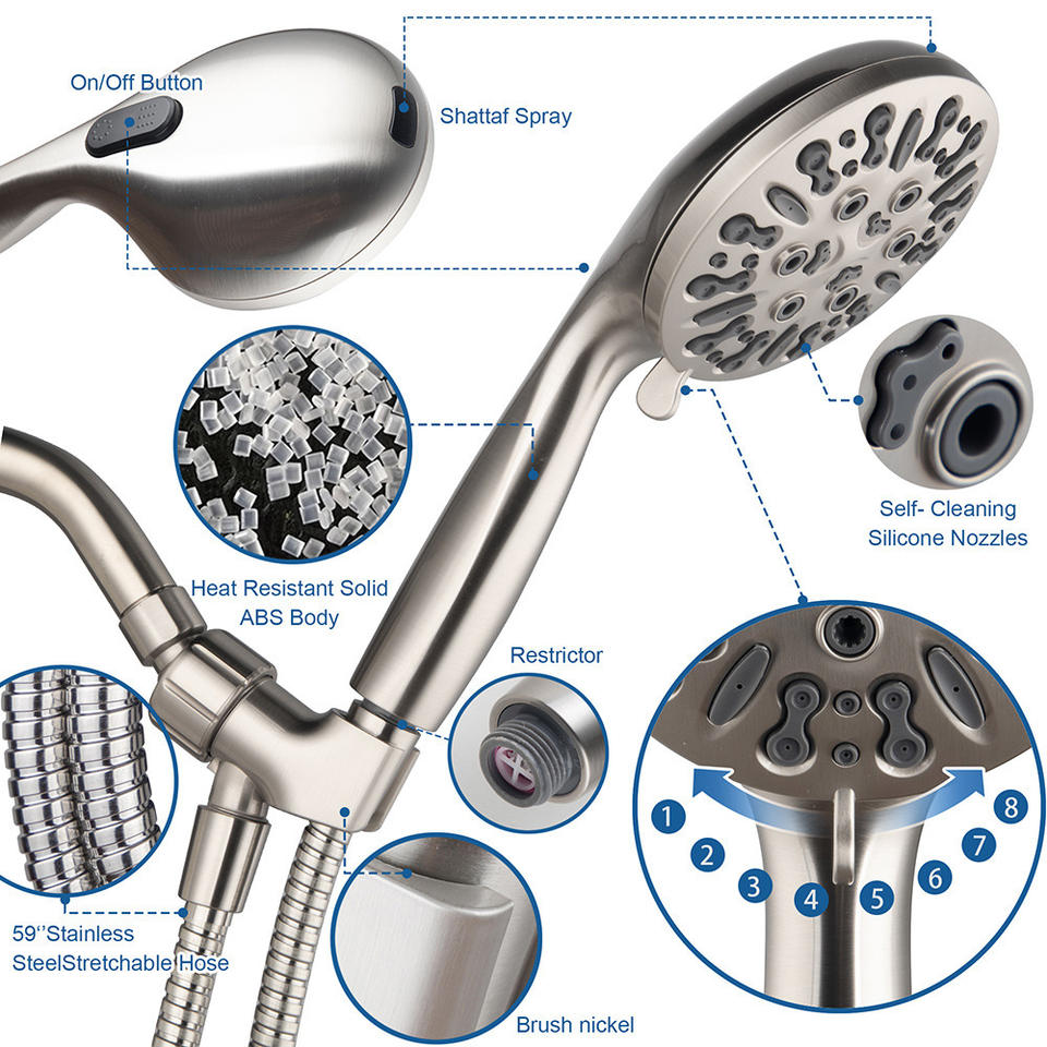 Juego de cabezal de ducha con pulverizador de alta presión, función de masaje, lluvia y burbujas, acabado en níquel cepillado, manguera de 59 pulgadas, diseño duradero