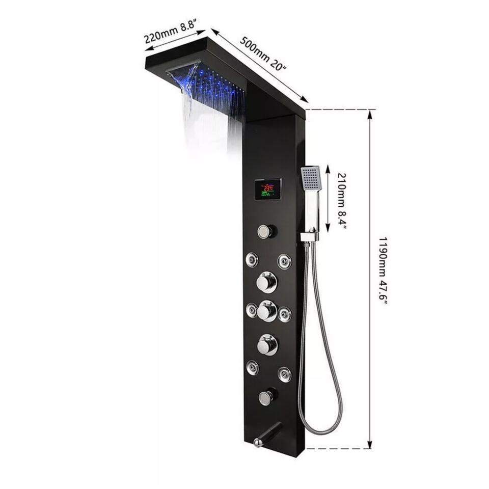 Juego de Ducha de Acero Inoxidable 304, Cabezal de Ducha Cuadrado con Pantalla Digital, Termostático, Luz Ambiental, Instalación Oculta Fácil