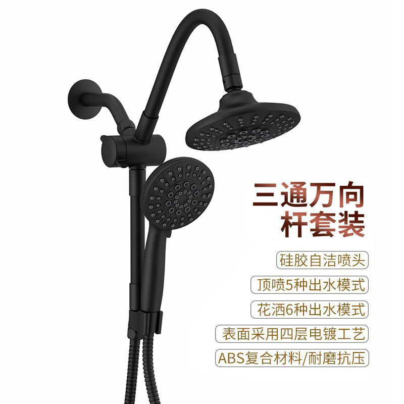 Juego de ducha con poste ajustable y cabezales dobles, 5 modos de pulverización para uso en el baño