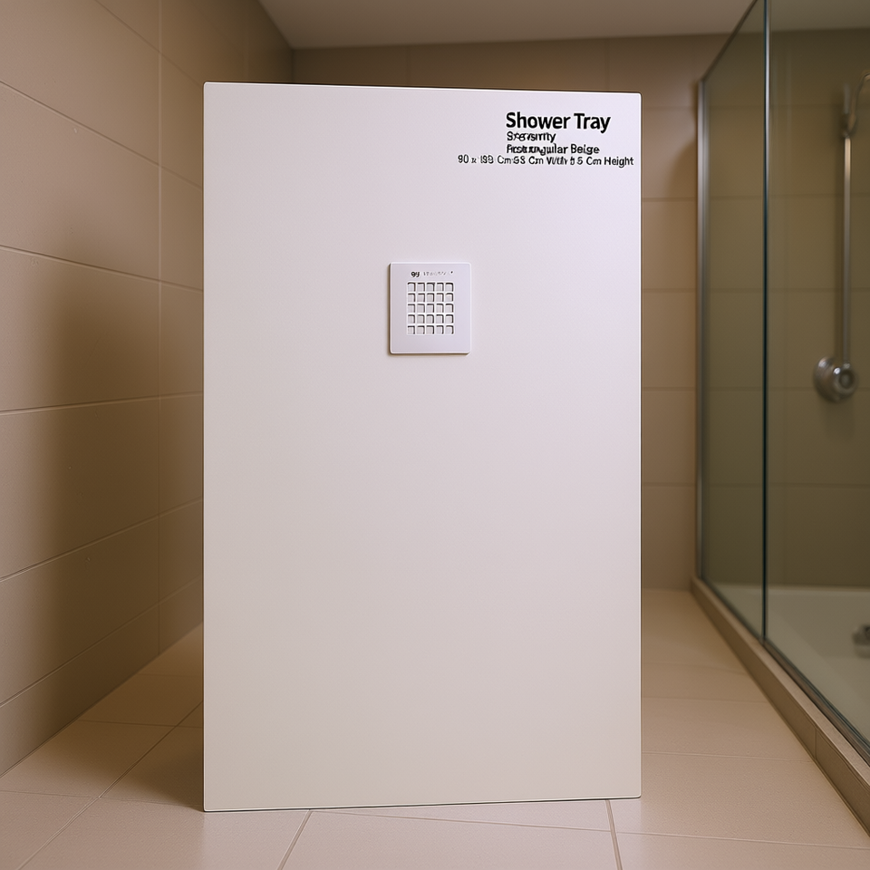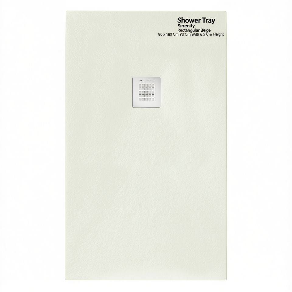 Plato de Ducha Rectangular Serenity Beige 90 x 180 cm, 93 cm de Ancho, 6.5 cm de Altura