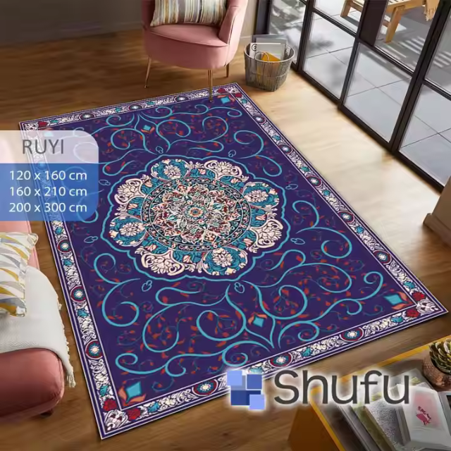 Alfombras Delgadas de Poliéster de Pelo Medio, Diseño Abstracto Moderno Shufu, Hechas a Máquina, Acabado Brillante Premium, Antideslizantes, Cómodas y Suaves