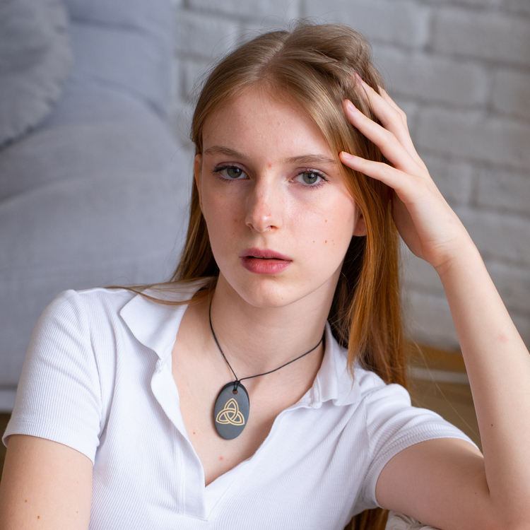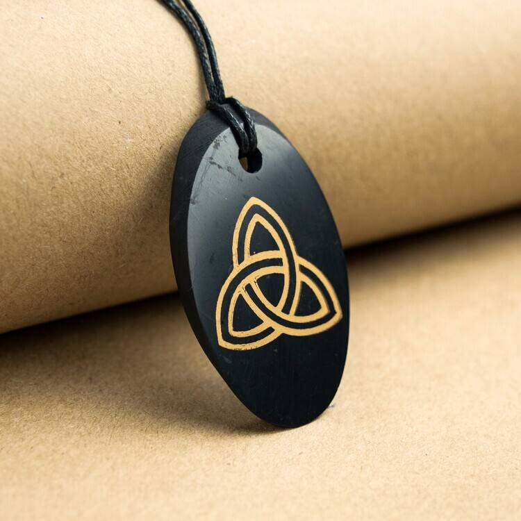 Colgante pulido ovalado corte Shungite con serigrafía Triquerta 1,3*2 in (34*50mm)