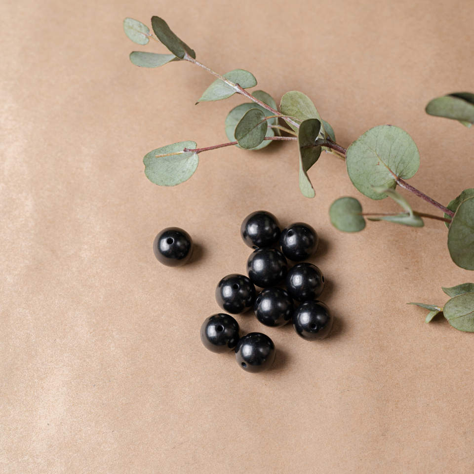 Cuenta pulida redonda Shungite Ø 0,39 in (10mm), Agujero Ø 0,06 in (1,5mm)