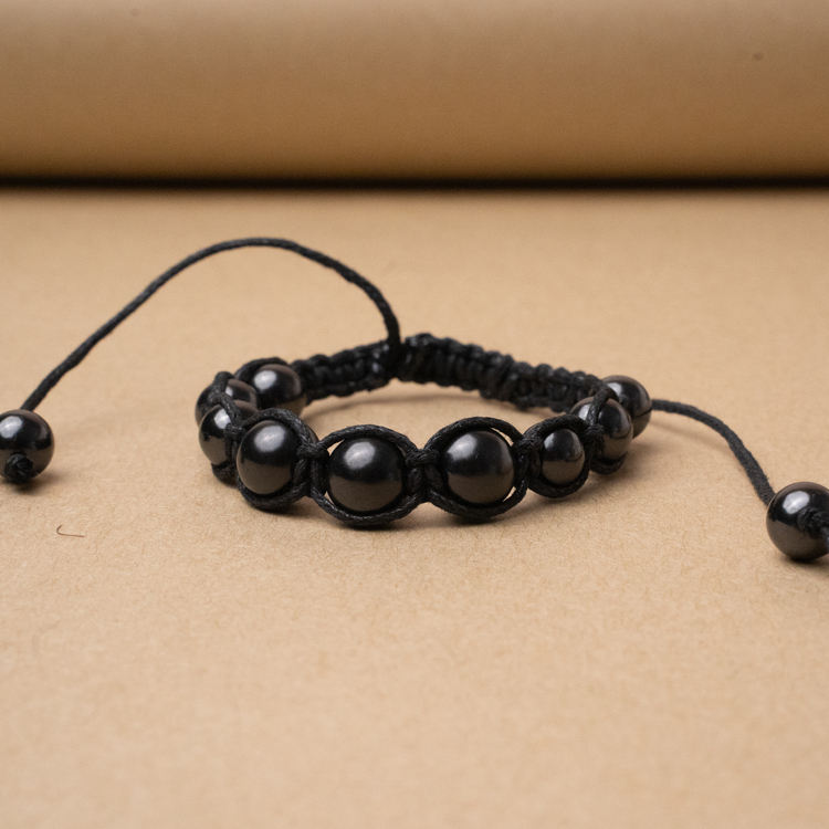 Pulsera de macramé shungita Shambhala Camilla con 8 cuentas redondas pulidas Ø 0,32 in (8mm) y 3 cuentas redondas pulidas Ø 0,39 in