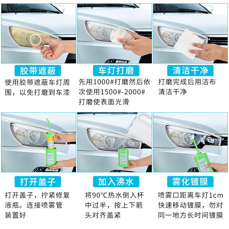 Solución de Reparación Nano para Faros Delanteros Shuogh de 100 ml con Discos de Lijado y Cinta para Restauración de Luces de Automóviles