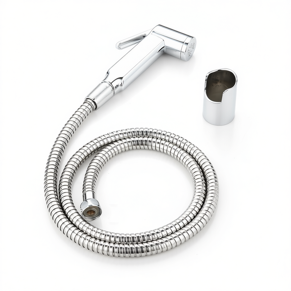 Kit de ducha con manguera y soporte de pared, cromado, 24 cm de longitud, para conjuntos de accesorios de baño