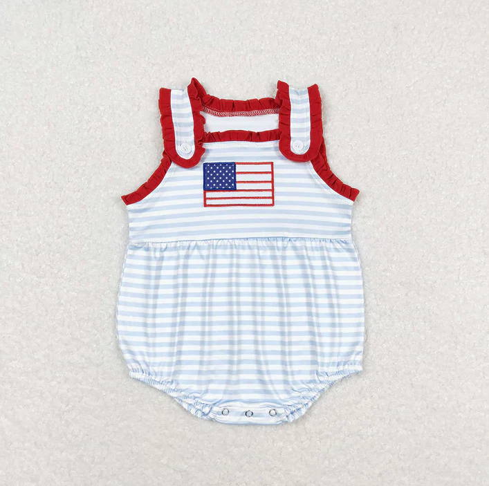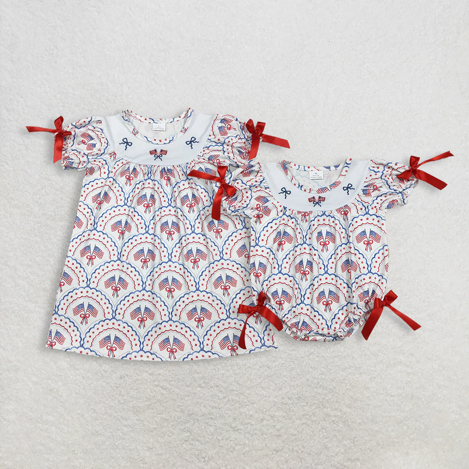 Conjunto de Ropa Infantil de Manga Corta con Bordado de la Bandera Americana para el Día de la Independencia del 4 de Julio, Ecológico y a Juego para Hermanos