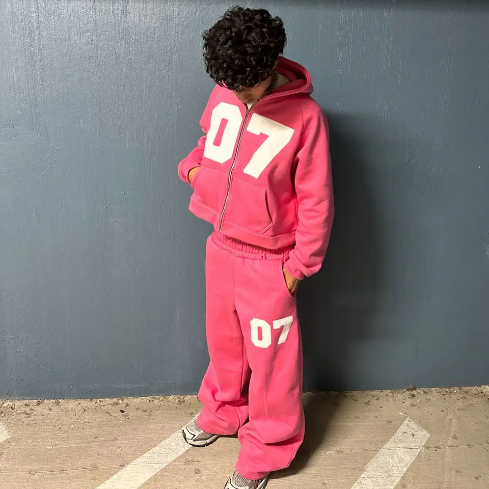 Bolsillo lateral hombro caído logotipo personalizado de gran tamaño grueso 100% algodón poliéster suave pesado sudaderas con capucha y pantalones de chándal hombres conjunto de chándal