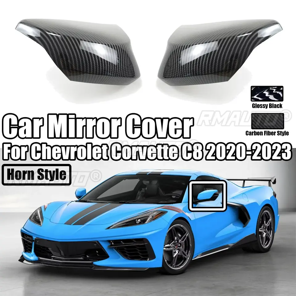 Cubierta de Espejo Retrovisor Lateral para Chevrolet Corvette C8 2020-2023, Estilo Fibra de Carbono Negro Brillante, Accesorios para Auto