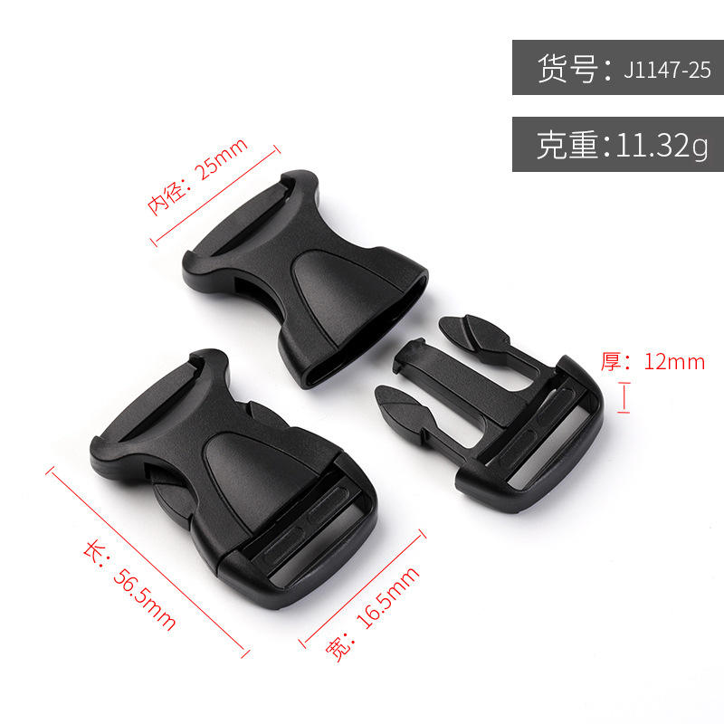 Hebilla de plástico de liberación lateral, 25 mm de diámetro interior, duradera, para bolsos, correas de mochila, ajustable, color negro sólido