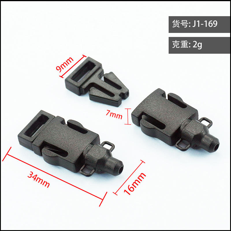 Hebilla de plástico de liberación lateral, 9 mm de diámetro interior, negra, duradera, para bolsos, resistente al desgaste