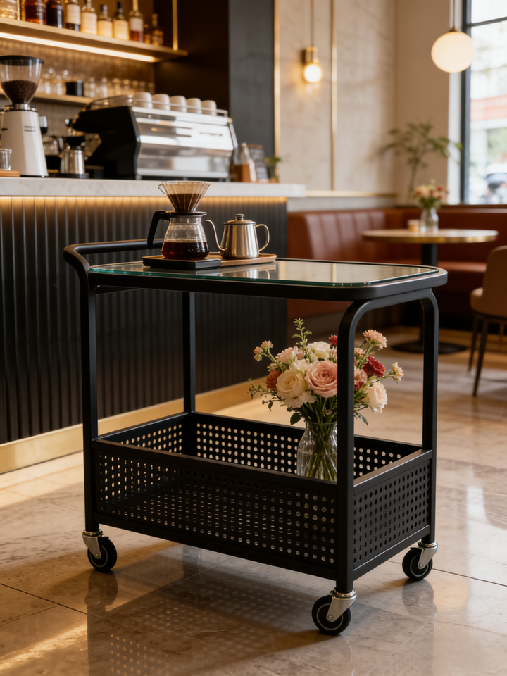 Mesa Auxiliar con Ruedas Bloqueables, Mesa Consola Pequeña, Mesa de Centro Moderna, Mesita de Noche, Estante de Almacenamiento, Sofá de Acero Inoxidable para Patio