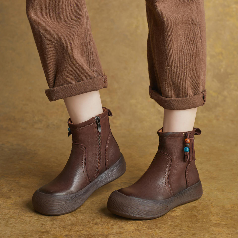 Botines con Cierre Lateral, Otoño Invierno, Nuevo Estilo Británico, Cuero Genuino, Punta Redonda, Tacón Plano, Botines Pop Over, Botas Martin, Zapatos de Mujer