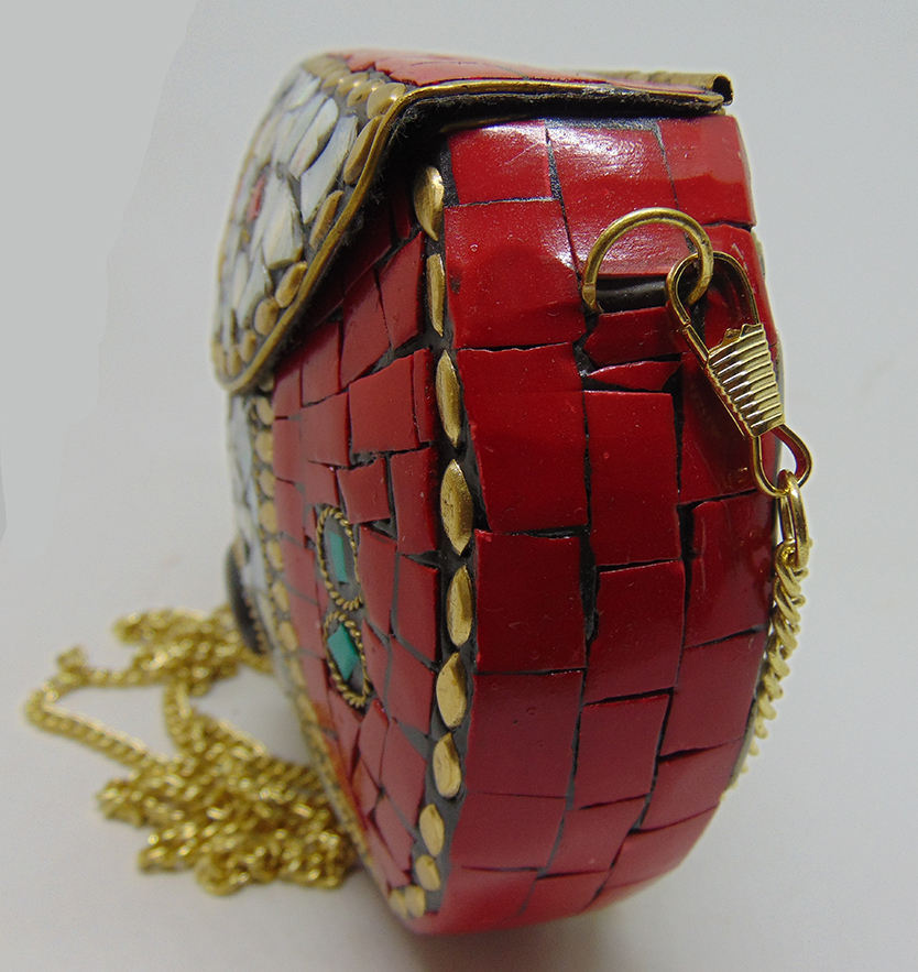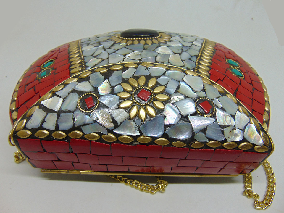 Sier & Red Multicolor Mosaic Metal Bolso Casual Fiesta o Boda Bolso de noche con patrón de marco de piedra de LUXURY CRAFTS