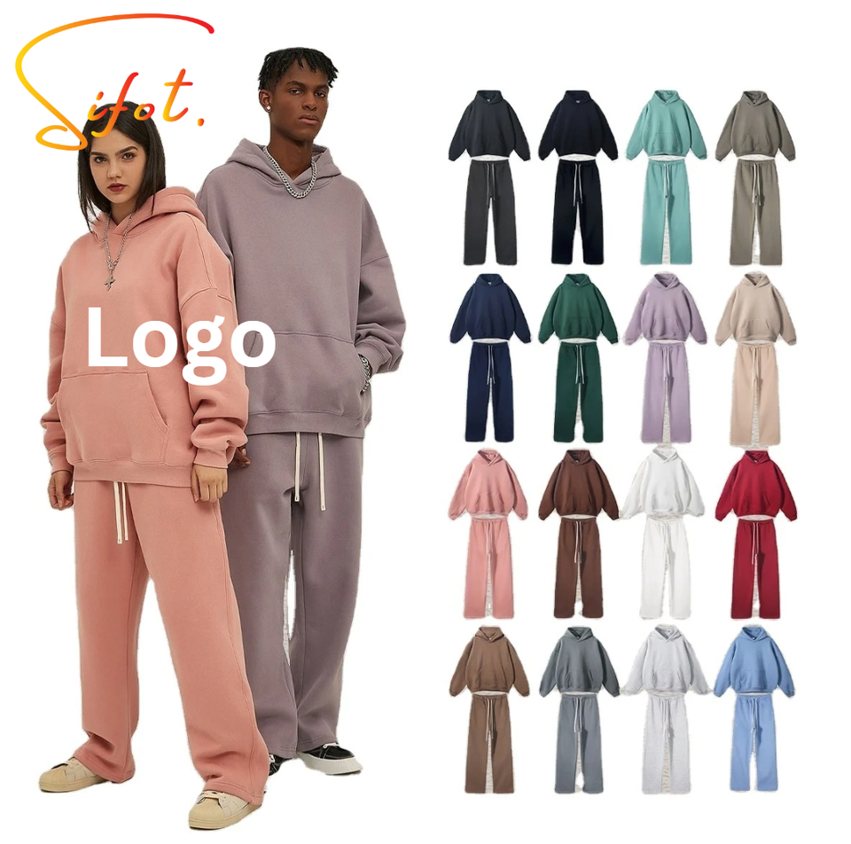 Sifot venta al por mayor diseño personalizado multicolor pantalones de chándal y Sudadera con capucha conjunto para hombres 700 GSM bordado