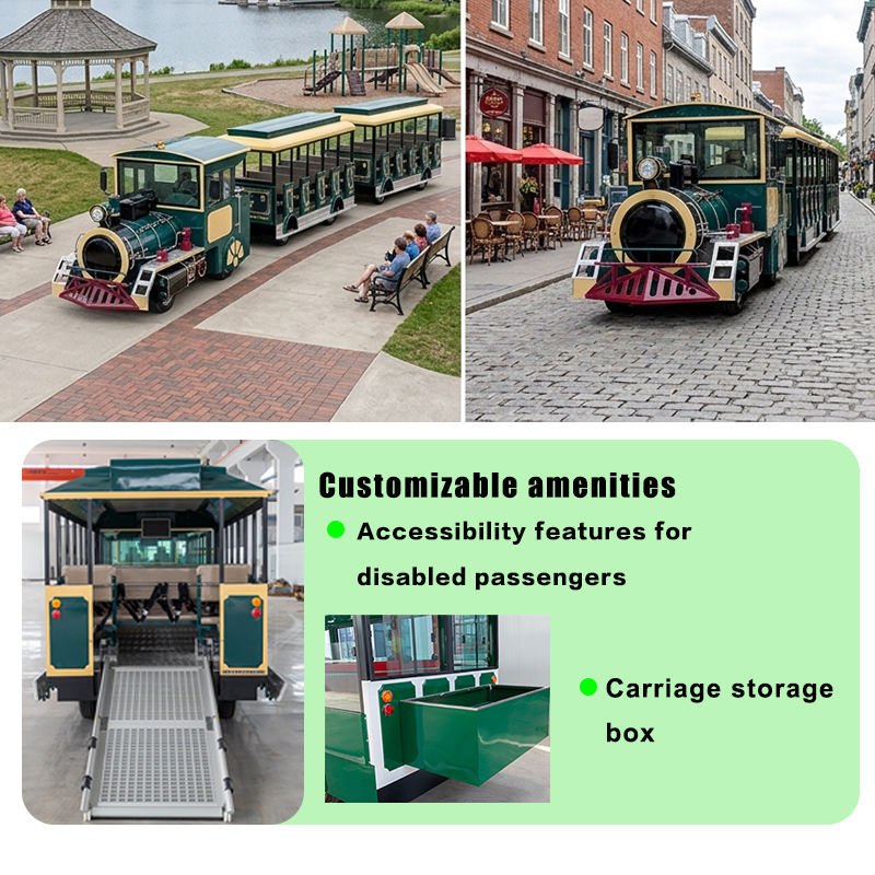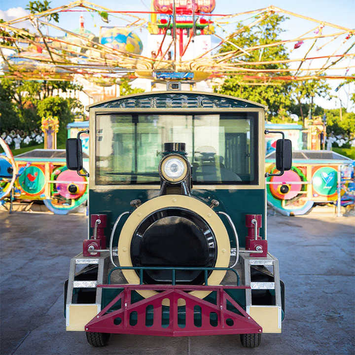 Tren Turístico Eléctrico de 42 Asientos, Totalmente Cerrado, con Puerta Automática, sin Rieles, para Parques