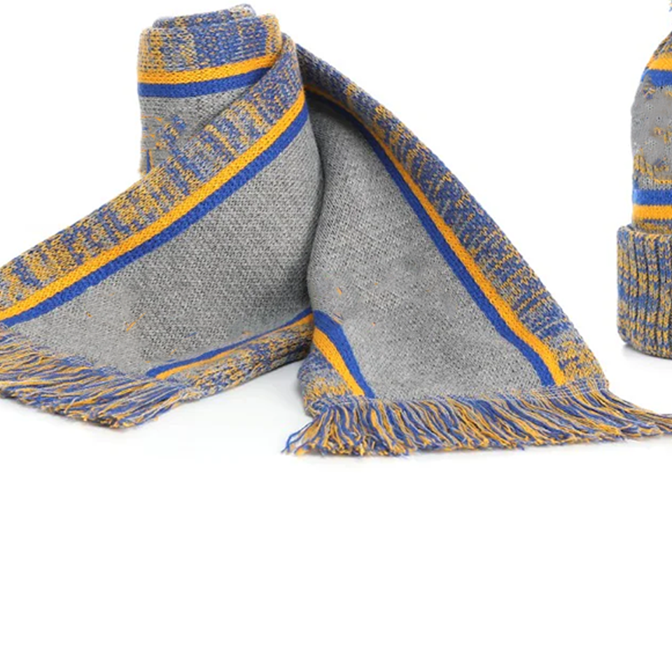 Conjunto de Bufanda Larga y Gorro de Punto Gris Sigma Gamma Rho SGRho, Bordado Personalizado en Azul Real y Dorado, Grueso y Cálido, Unisex, para Invierno
