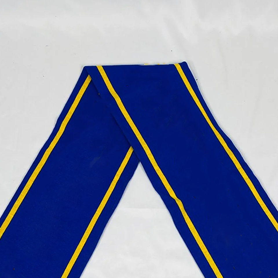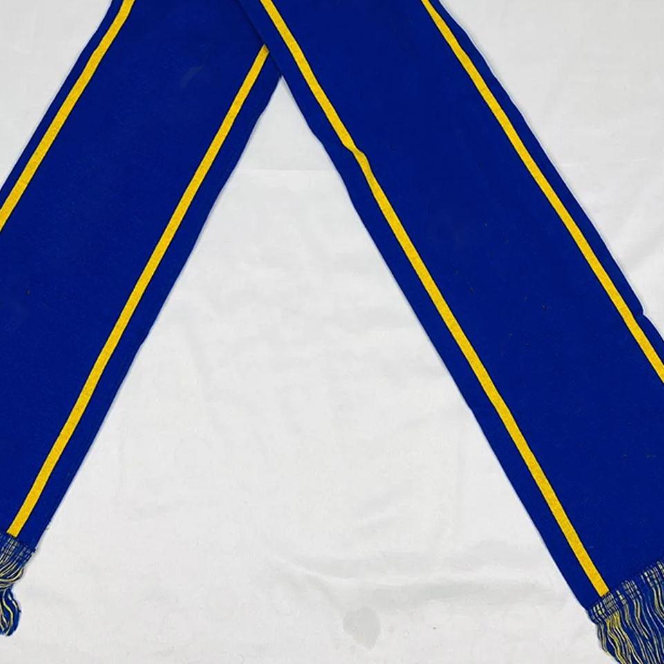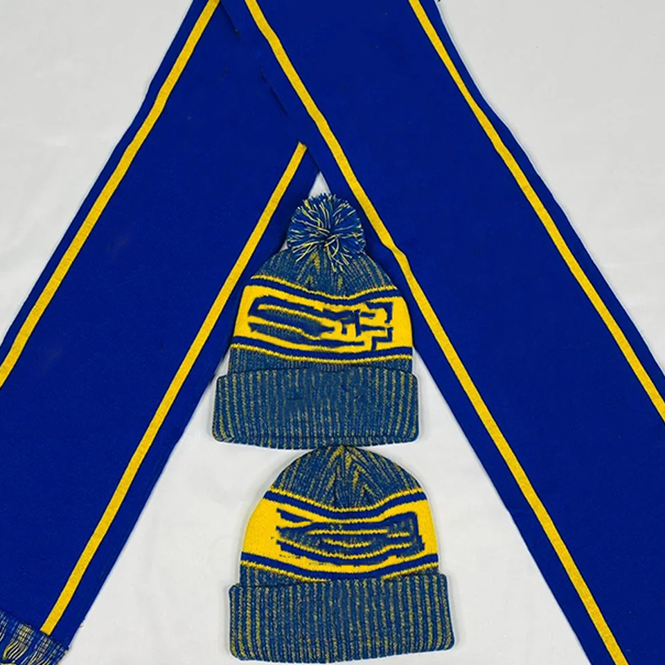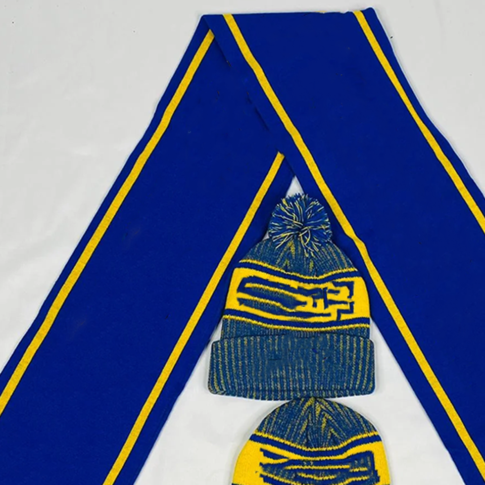Conjunto de Bufanda Larga Acrílica y Gorro Sigma Gama Rho SGRho Azul Real Dorado | Ropa de Invierno Personalizada con Bordado para Hermandades
