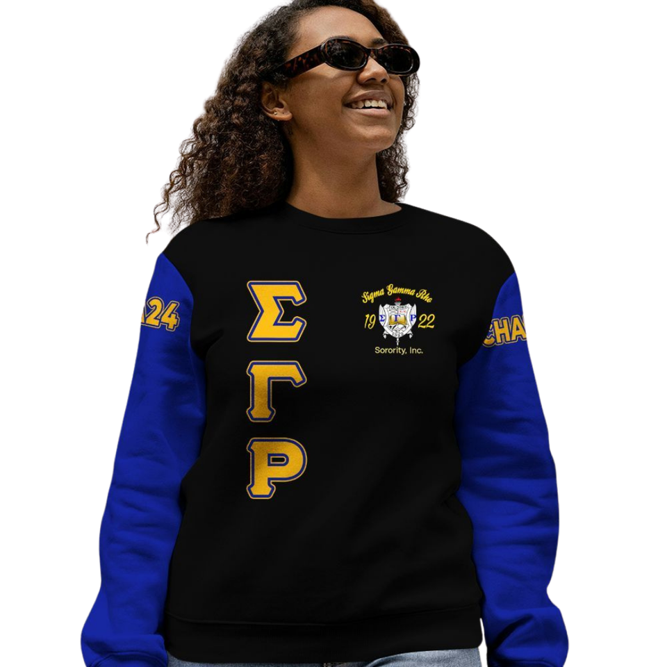 Sudadera con Cuello Redondo Azul y Dorado de Sigma Gamma Rho 1922, Ropa Griega de Hermandad, Sudadera de Forro Polar Premium, Estilo Casual de Invierno para Mujer