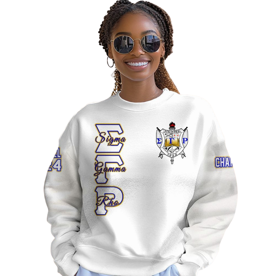 Sudadera con Cuello Redondo de la Hermandad Sigma Gamma Rho 1922 Azul y Dorado, Ropa Griega, Sudadera de Forro Polar Premium, Moda de Invierno para Mujer