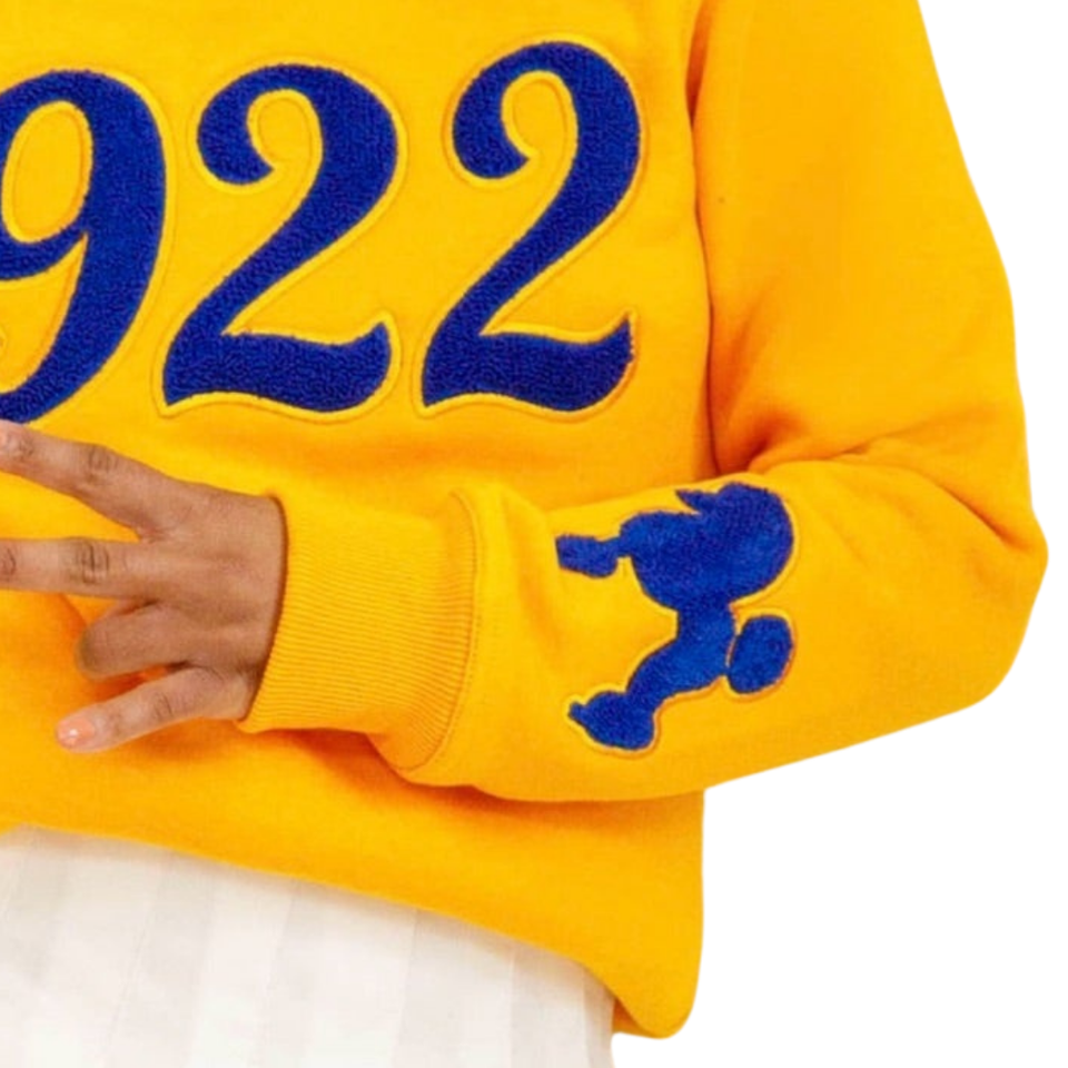 Sudadera de chenilla con estampado de poodle dorado Sigma Gamma Rho 1922 para mujer, mezcla de algodón, manga larga, estilo casual y elegante