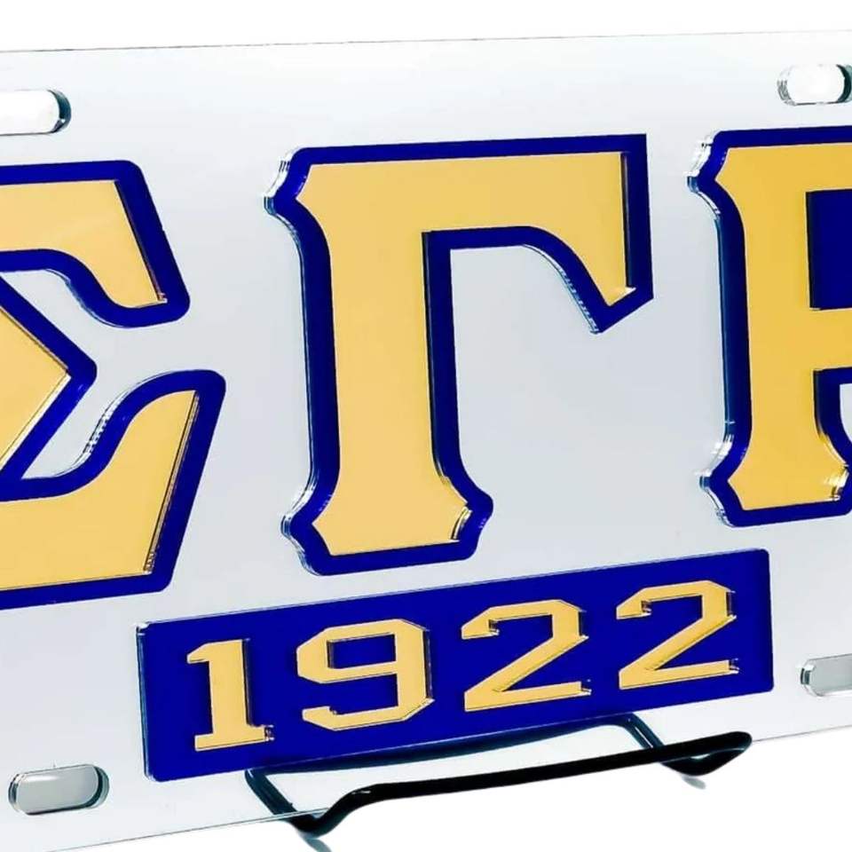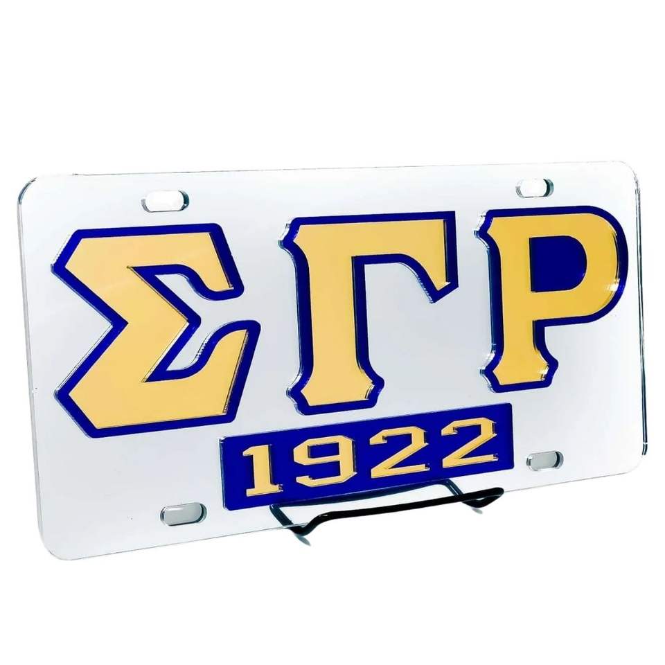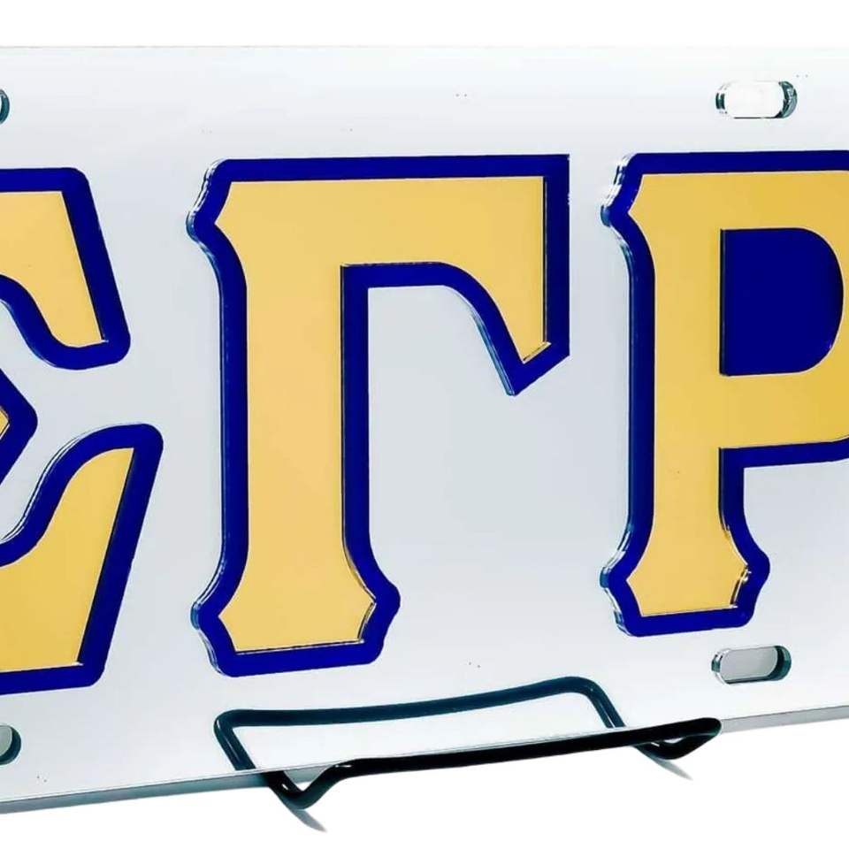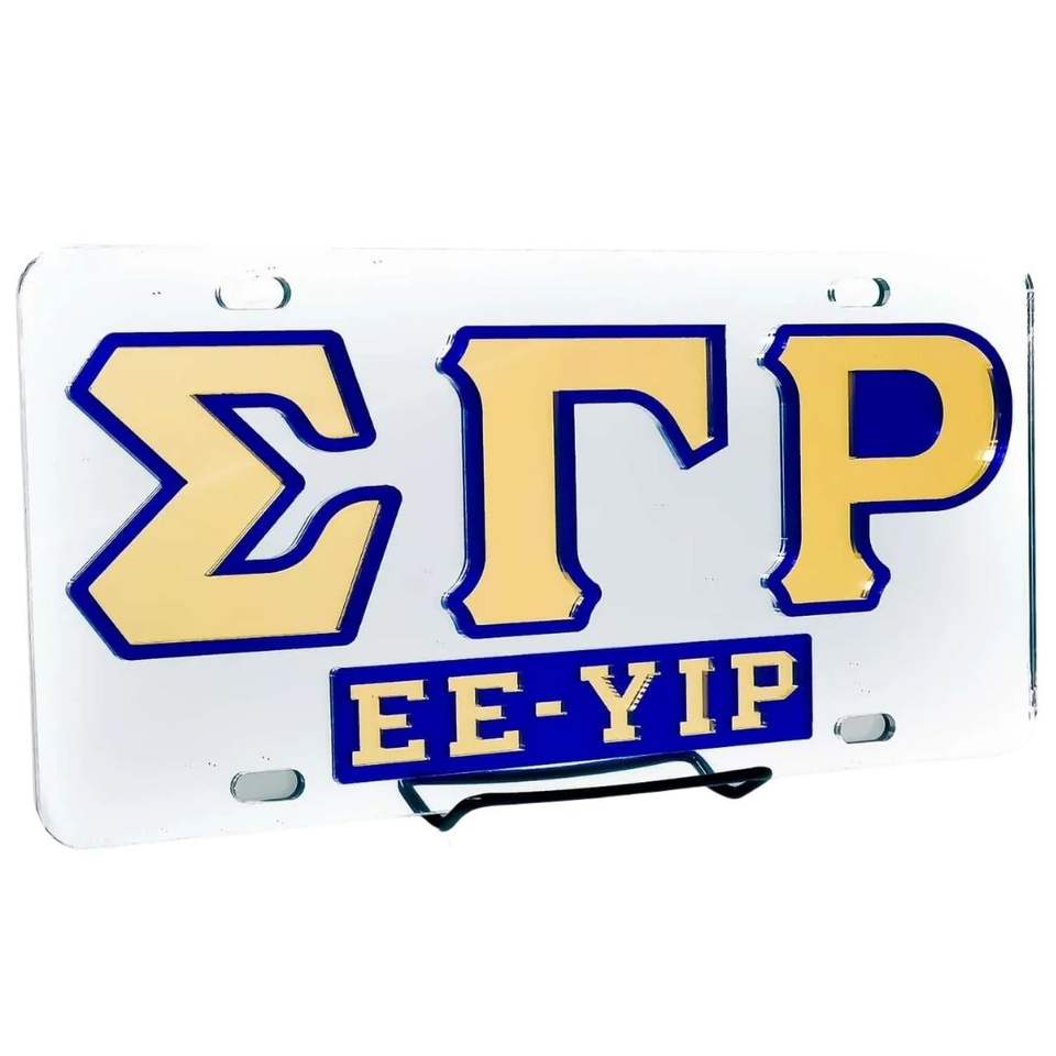 Placa de Matrícula Plateada Sigma Gamma Rho con Letras Griegas, Accesorio Decorativo para Auto, Metal Resistente