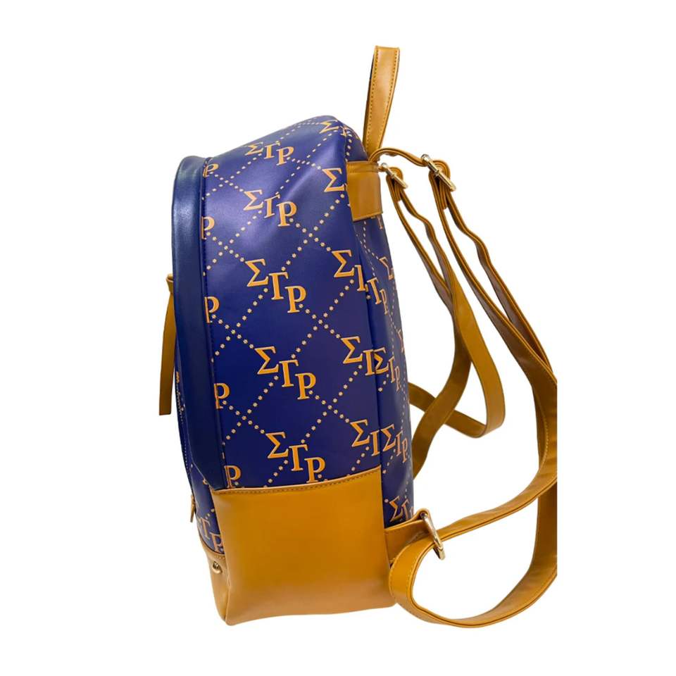 Sigma Gamma Rho Mochila Entrelazada Dorada y Azul