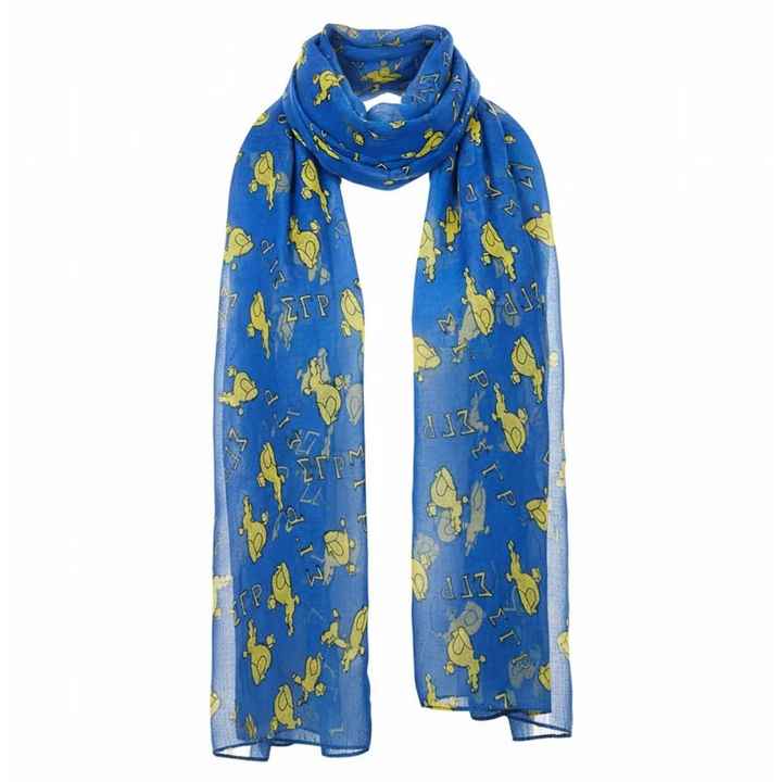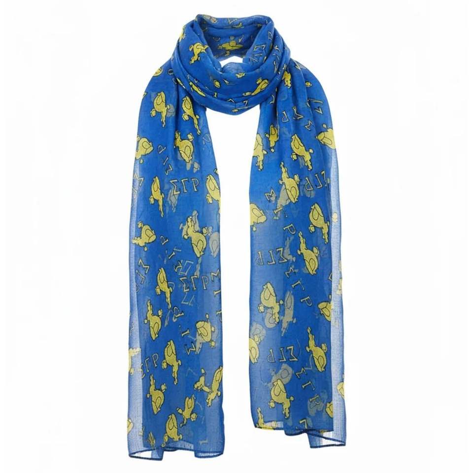 Bufanda con Estampado de Poodle de Sigma Gamma Rho, Azul y Dorado, Bufanda de la Hermandad Griega, Accesorio de Moda Ligero y Elegante