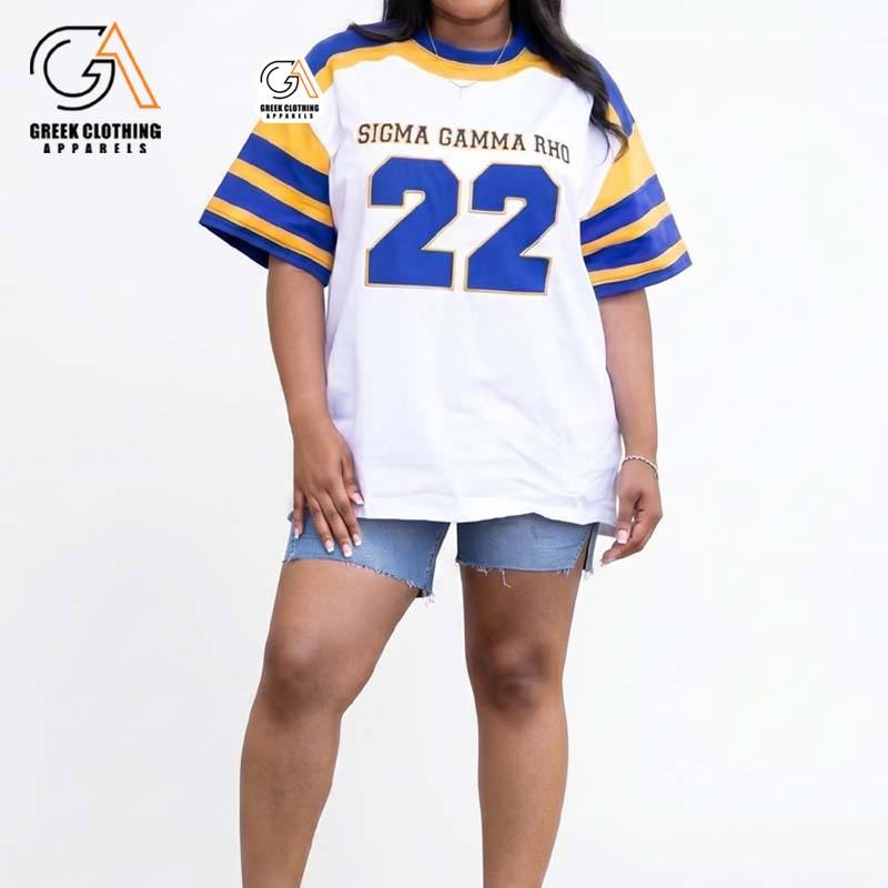 Camiseta de Rugby Sigma Gamma Rho para Mujer, Amarillo y Azul 1922, Manga Larga, Estilo Deportivo Casual de la Hermandad Griega
